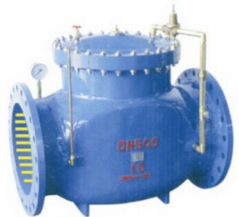當(dāng)閥門從進(jìn)口端給水時(shí),水流過針閥進(jìn)入主閥控制室,出口壓力通過導(dǎo)管作用到導(dǎo)閥上。當(dāng)出口壓力高于導(dǎo)閥彈簧設(shè)定值時(shí),導(dǎo)閥關(guān)閉。控制室停止排水,此時(shí)主閥控制室內(nèi)壓力高升關(guān)閉主閥,出口壓力不再升高。當(dāng)閥門出口壓力下降到導(dǎo)閥彈簧設(shè)定壓力時(shí),導(dǎo)閥開啟,控制室向下游排水。由于導(dǎo)閥系統(tǒng)排水量大于針閥的進(jìn)水量,主閥控制室壓力下降,進(jìn)口壓力使主閥開啟。在穩(wěn)定狀態(tài)下,控制室進(jìn)水、排水相同,主閥開度不變,減壓效果明顯。 多噴孔減壓閥特點(diǎn): 該閥性能穩(wěn)定、安全可靠、安裝調(diào)節(jié)方便,使用壽命長(zhǎng)?捎糜谏罱o水、消防系統(tǒng)及工業(yè)給水系統(tǒng)。